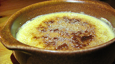 Juuri ennen tarjoilua ripottele pinnalle tummaa sokeria ja sulata se. Parhaiten homma käy kaasupolttimella, mutta jonkinmoiseen lopputulokseen pääsee uunin grillvastuksillakin tarpeen vaatiessa.